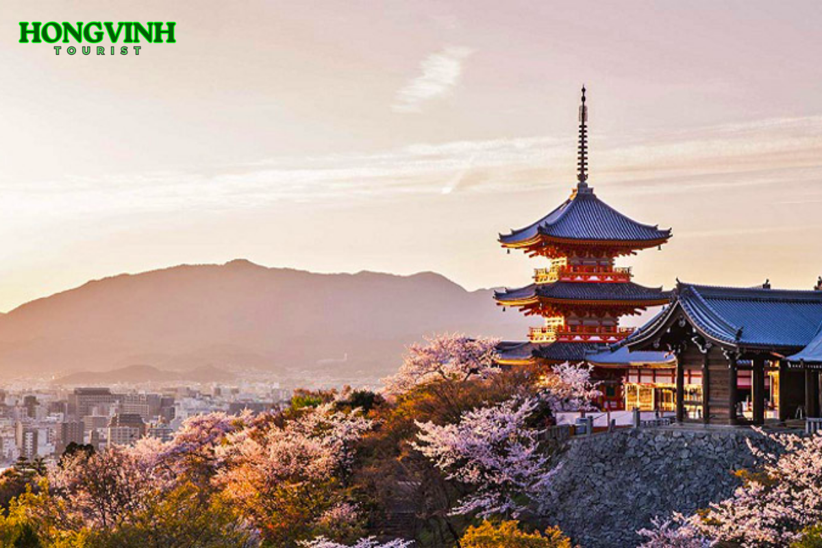 - Chùa Thanh Thủy (Kiyomizu): Là một trong những ngôi chùa nổi tiếng nhất ở Kyoto, Kiyomizu-dera được xây dựng từ năm 778 và có kiến trúc gỗ độc đáo nằm trên sườn đồi với tầm nhìn bao quát toàn cảnh thành phố. Nơi đây còn nổi tiếng với dòng suối Otowa, nước từ ba dòng chảy tượng trưng cho trường thọ, tình duyên và trí tuệ, mà đoàn thường đến uống để cầu nguyện những điều tốt lành.