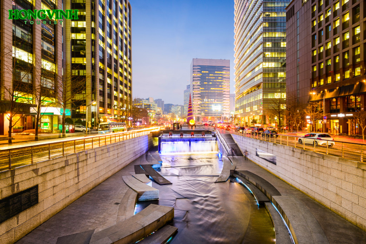 - Suối Cheonggyecheon – Mang đặc trưng khí hậu của Hàn Quốc với 4 mùa khác nhau. Nếu Seoul mang vẻ ngoài của sự sầm uất thì con suối này lại thể hiện sự bình dị, nhẹ nhàng và mang đến cảm giác dễ chịu cho xung quanh. Đây còn là điểm thường tổ chức nhiều hoạt động thu hút người dân và khách du lịch tham quan hàng năm.