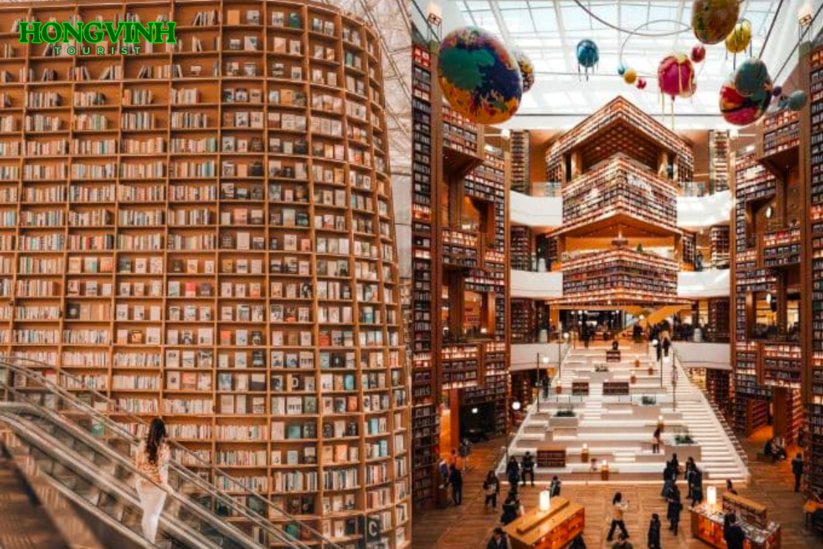 - Thư viện Starfield địa điểm check-in hoàn hảo dành cho những ai có niềm đam mê với sách đến để chụp ảnh, chiêm ngưỡng vẻ đẹp kiến trúc đồ sộ với những giá sách cao chót vót.
