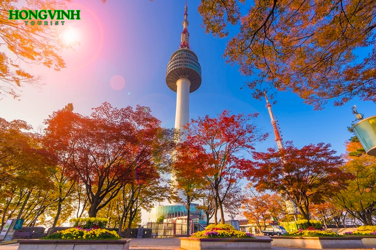 - Tháp Namsan – Một biểu tượng của thủ đô Seoul: Tọa lạc ngay trên núi Namsan mang đến cho du khách những góc nhìn toàn cảnh thủ đô cực đẹp khi khung cảnh rợp vàng sắc màu quyến rũ của mùa thu, trải nghiệm cùng người thương gắn khóa tình yêu vĩnh cửu. (Thang máy lên đỉnh tháp tự túc)