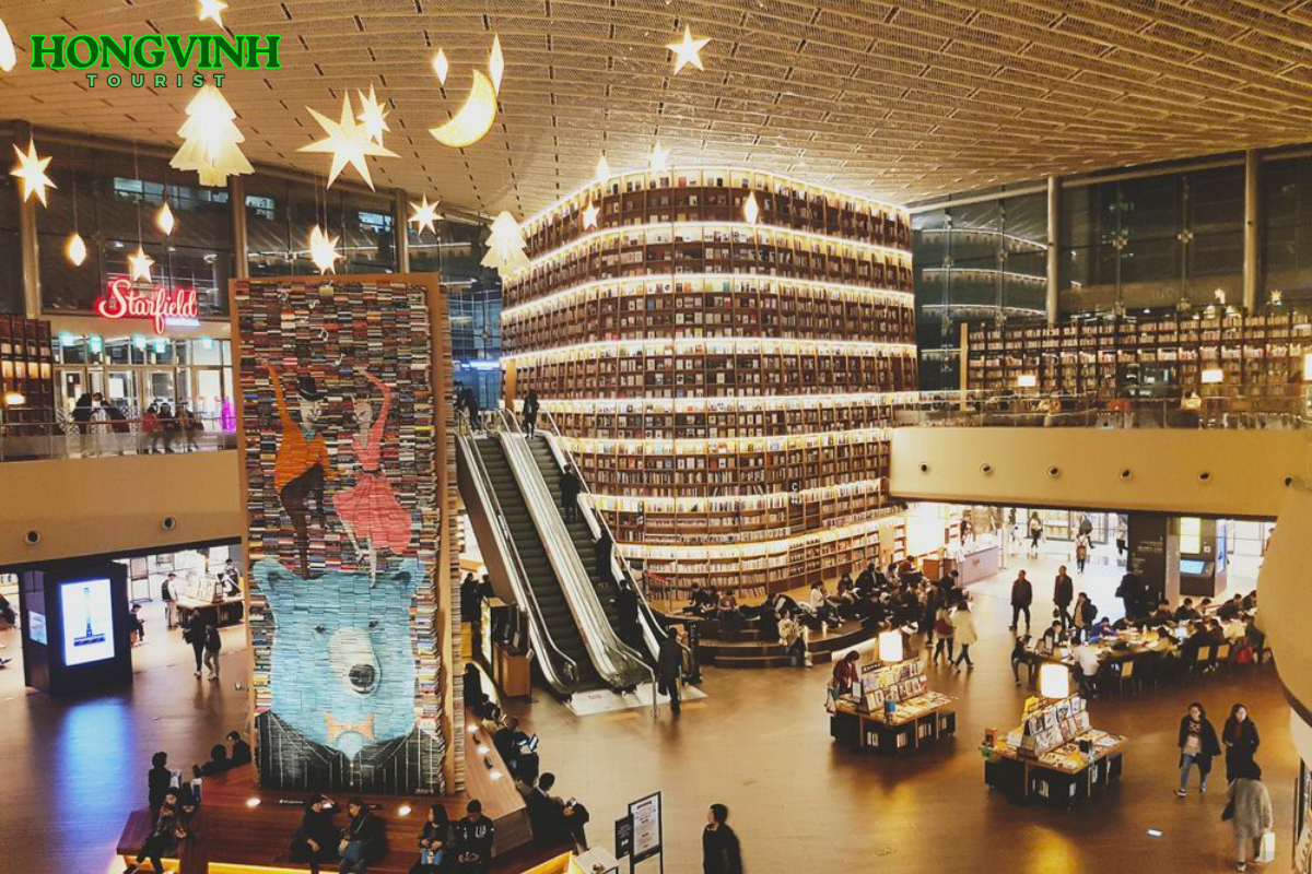 - Thư viện Starfield địa điểm check-in hoàn hảo dành cho những ai có niềm đam mê với sách đến để chụp ảnh, chiêm ngưỡng vẻ đẹp kiến trúc đồ sộ với những giá sách cao chót vót được trang trí lộng lẫy cũng như sự nguy nga, tráng lệ trong phong cách xây dựng.
