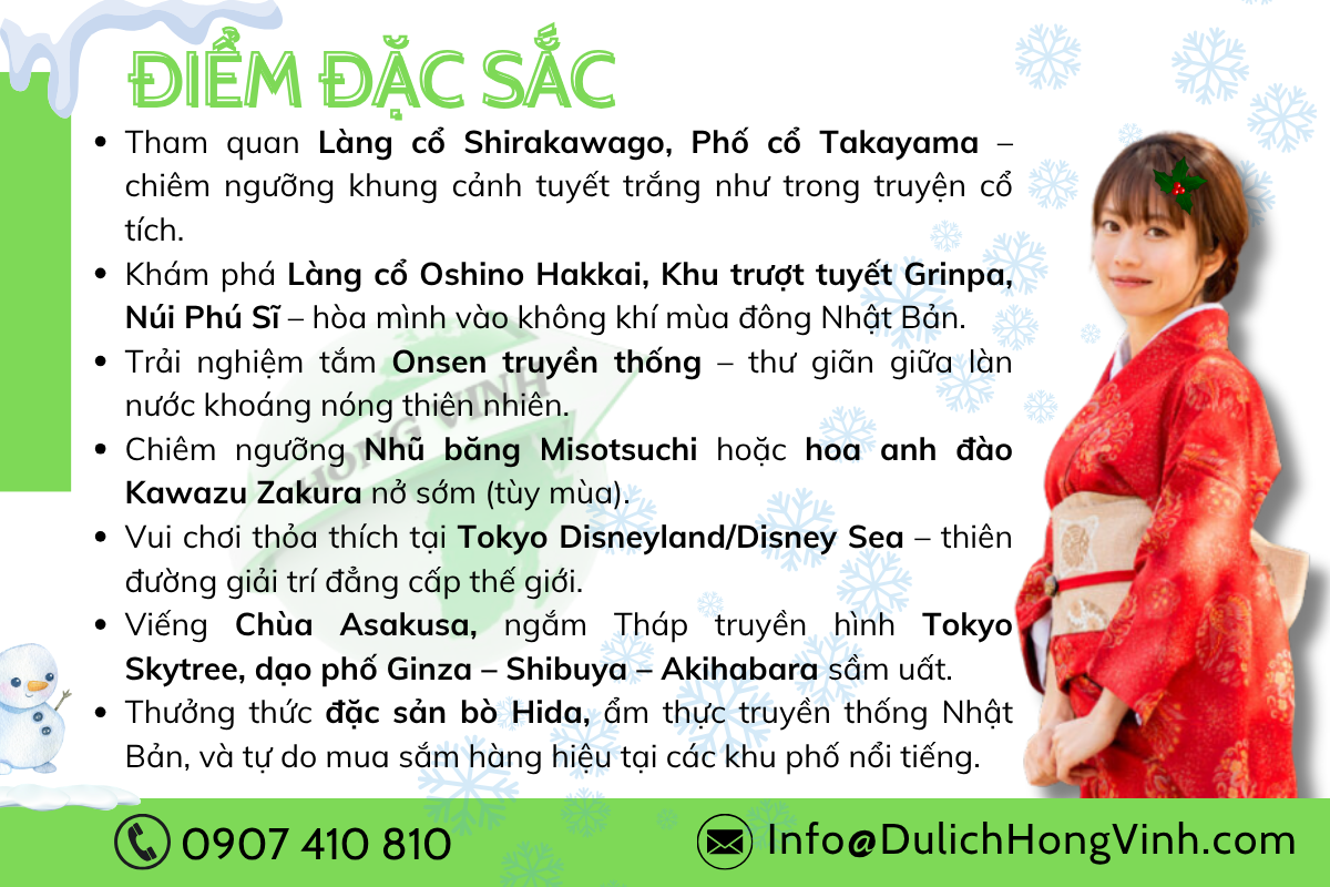 - Làng cổ Oshino Hakkai: Nằm dưới chân núi Phú Sĩ, nổi tiếng với những hồ nước trong vắt và khung cảnh thanh bình. Ngôi làng mang đến cho đoàn cơ hội tìm hiểu về văn hóa nông thôn Nhật Bản.