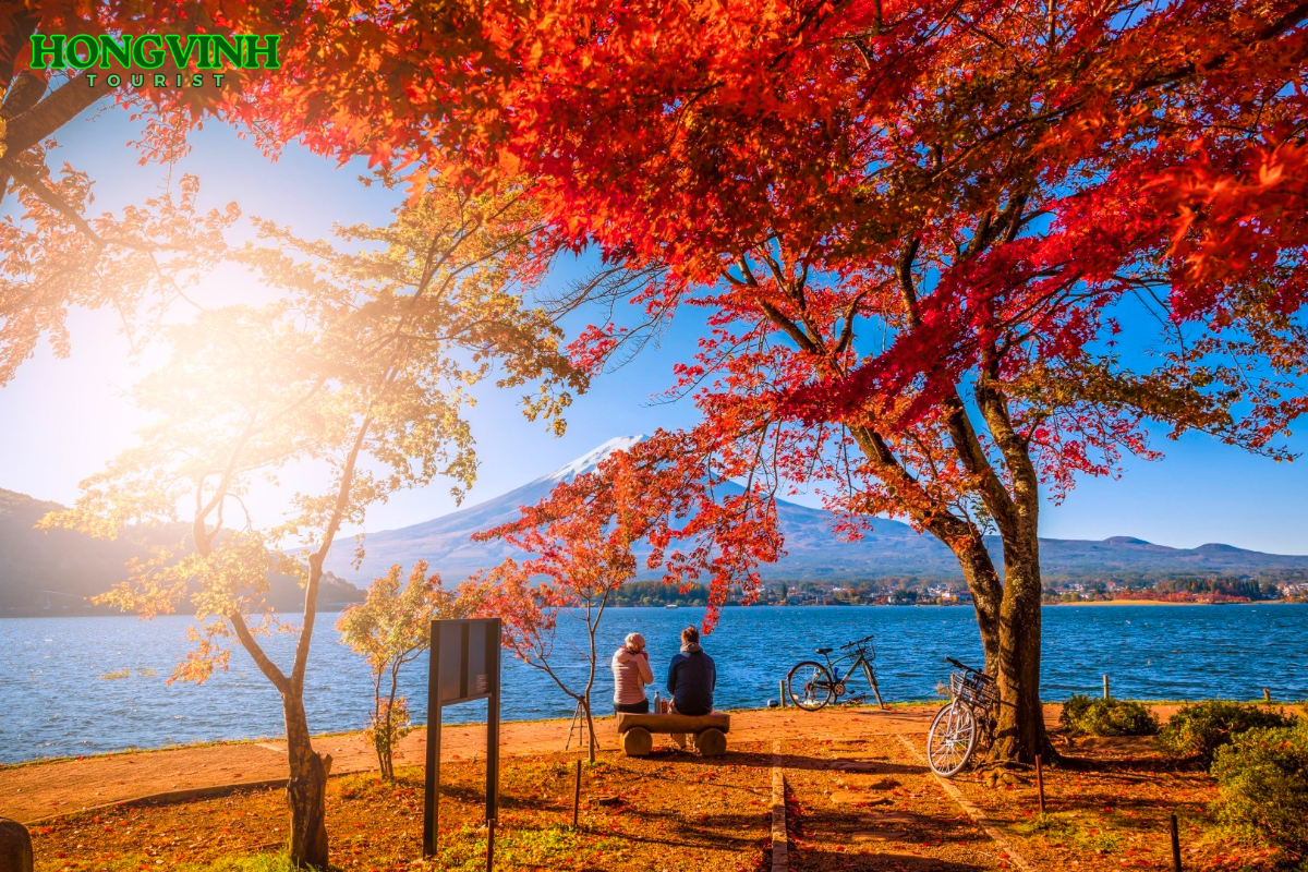 - Tản bộ hành lang lá đỏ bên hồ Kawaguchi: Chiêm ngưỡng cảnh sắc lá phong đỏ đan xen với màu vàng của lá Gingko (cây bạch quả).