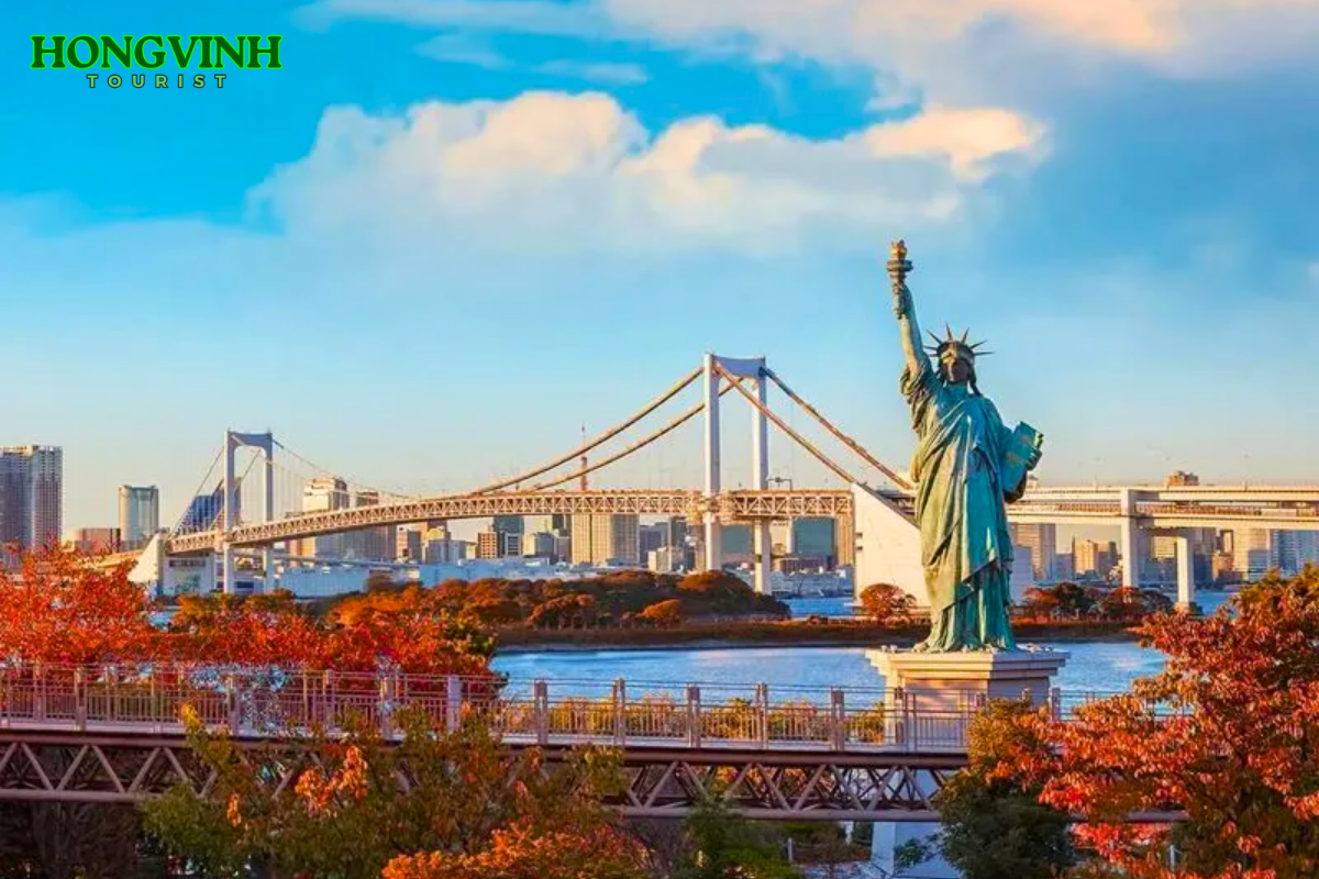 - Đảo nhân tạo Odaiba: Là một khu phức hợp giải trí và mua sắm hiện đại nằm trong vịnh Tokyo, Odaiba nổi tiếng với các trung tâm thương mại, bảo tàng khoa học, khu vui chơi, và cả tượng Nữ thần Tự do phiên bản thu nhỏ. Đây là điểm đến lý tưởng để trải nghiệm cuộc sống sôi động của Tokyo và tận hưởng khung cảnh bờ biển đẹp mắt