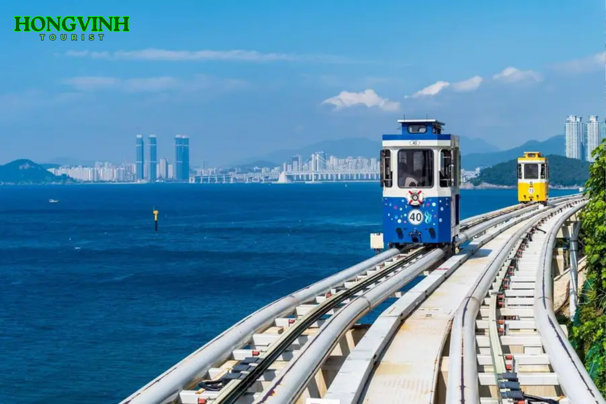 • Trải nghiệm đi tàu điện ven biển Haeundae – Nơi khách du lịch có thể ngắm toàn cảnh bãi biển Haeundae từ trên cao siêu đẹp ở Busan.