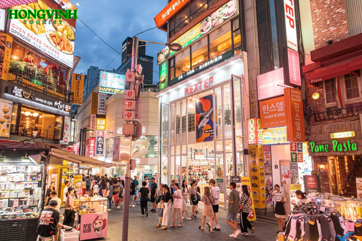 Thiên đường mua sắm khu phố đi bộ Myeongdong – Top 1 trong 4 con đường mua sắm lớn nhất Seoul. Bạn dễ dàng bắt gặp hàng ngàn thương hiệu thời trang quen thuộc tại đây. Thưởng thức các món ăn đặc sản của xứ Hàn.
